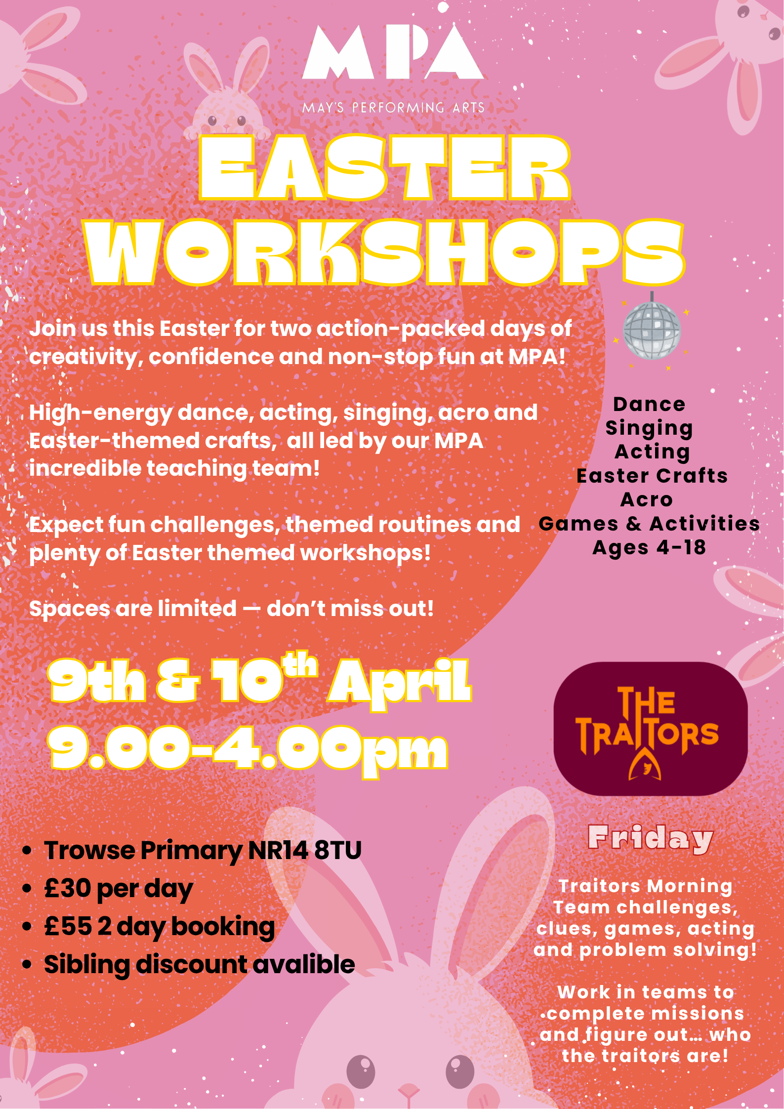 Mays Performing Arts aims to provide high standard training in Dance, Theatre & Music. We aspire to help and teach all pupils with no added pressure, in a fun caring and nurturing environment. Our School currently offers classes in Ballet, Tap, Modern, Jazz, Musical Theatre, Pop & Street, Singing, Strengthening and Conditioning, Singing and Summer UK Tours.